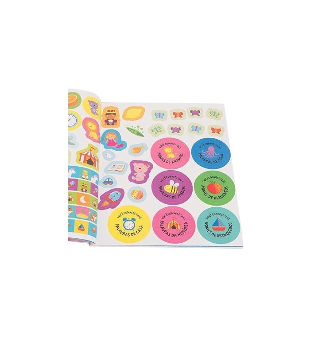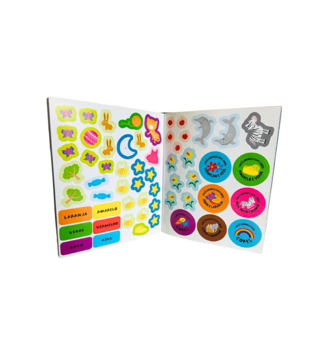 Com mais de 150 adesivos coloridos e interativos, ele ensina as primeiras palavras, números, cores, formas e muito mais.